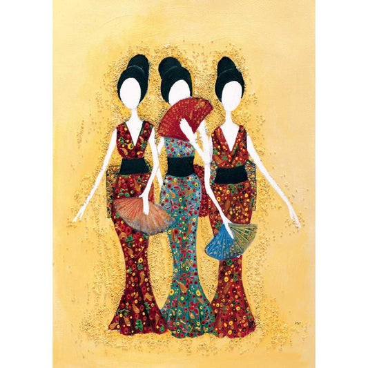 Japanese ladies White Modern Wood Framed Art Print by Hedy