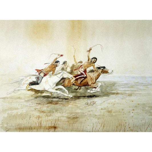 Indian Horse Race No.4 White Modern Wood Framed Art Print by Russell, Charles M.