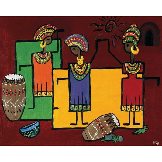 African ladies 3-3 White Modern Wood Framed Art Print by Hedy