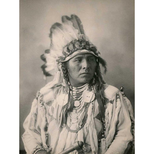 Indian wearing White War Bonnet- 1900 White Modern Wood Framed Art Print by Anonymous