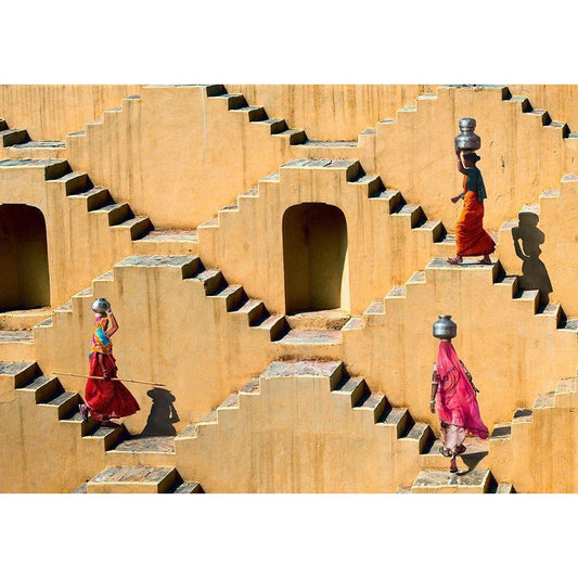 Stepwell in Jaipur-India White Modern Wood Framed Art Print by Pangea Images