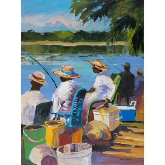 Fishing IV White Modern Wood Framed Art Print by Slivka, Jane