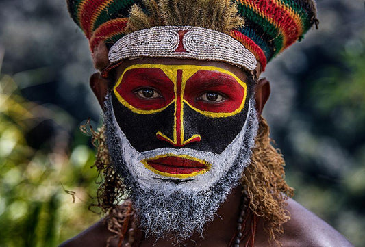 Asmat Warrior White Modern Wood Framed Art Print with Double Matting by Nasution, Girdan