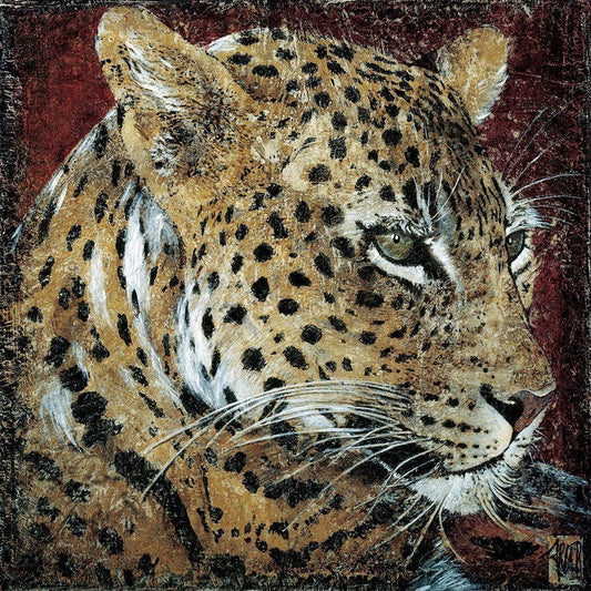Portrait de leopard Gold Ornate Wood Framed Art Print with Double Matting by Arietti, Fabienne