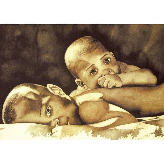 Mother and Child Gold Ornate Wood Framed Art Print with Double Matting by Unknown