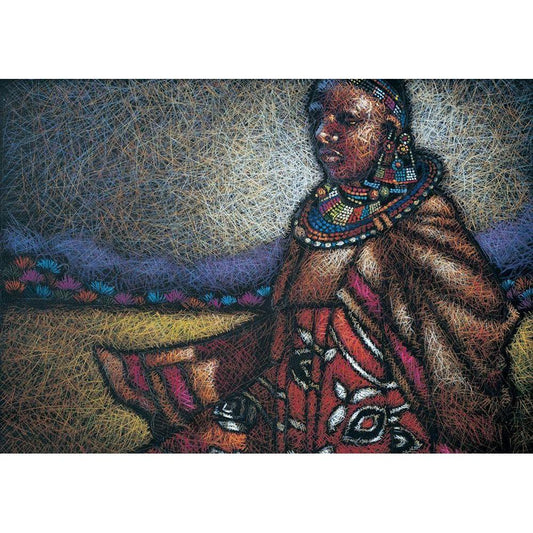 Nubian Lady Sitting Gold Ornate Wood Framed Art Print with Double Matting by Unknown