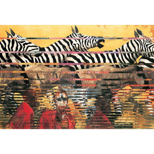 Zebras Extreme Gold Ornate Wood Framed Art Print with Double Matting by Unknown