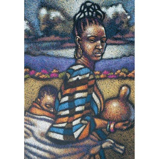 Nubian Lady and Child Gold Ornate Wood Framed Art Print with Double Matting by Unknown