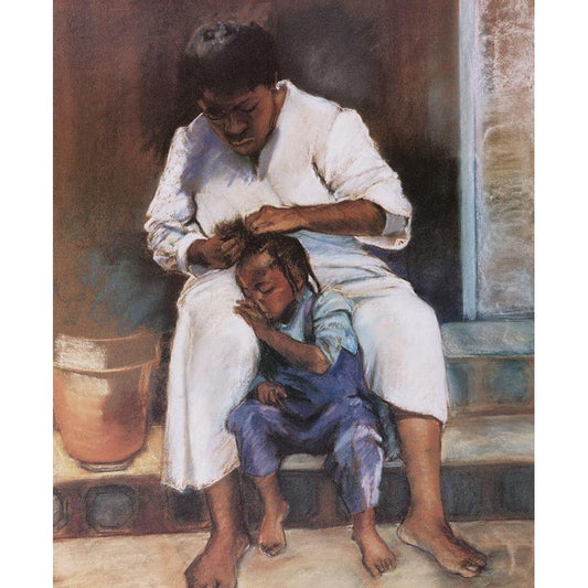 Hair Braiding Gold Ornate Wood Framed Art Print with Double Matting by Unknown