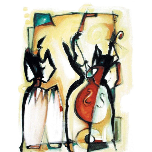 Bass and Bongos Gold Ornate Wood Framed Art Print with Double Matting by Unknown