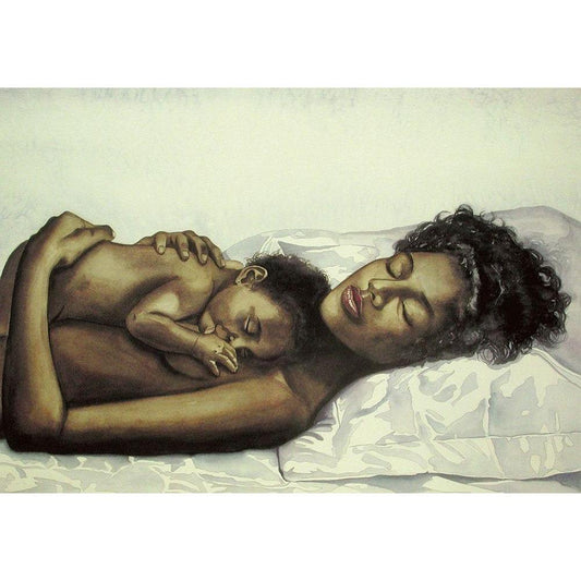 Mother and Child Gold Ornate Wood Framed Art Print with Double Matting by Unknown