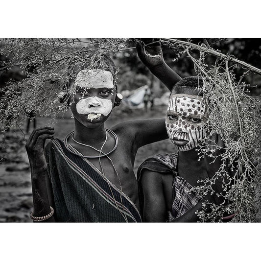 Two Surmi Girls - Ethiopia Gold Ornate Wood Framed Art Print with Double Matting by Inazio Kuesta, Joxe
