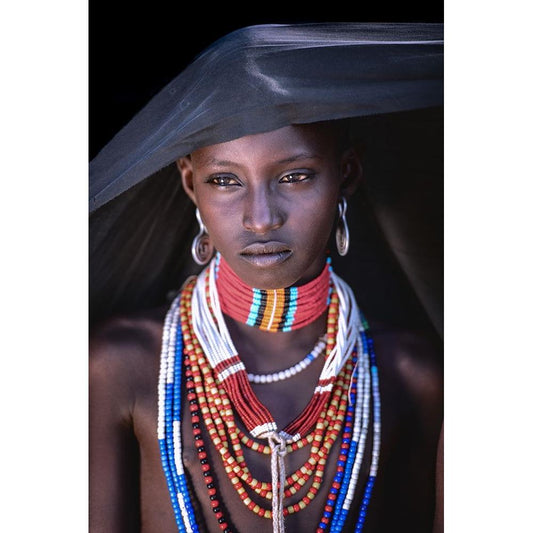 Jiye tribeswoman Gold Ornate Wood Framed Art Print with Double Matting by Cole, Trevor