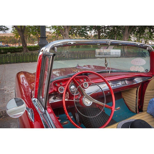 Interior view of red 57 Chevrolet Bel Air convertible in Habana-Havana-Cuba Gold Ornate Wood Framed Art Print with Double Matting by Miglavs, Janis