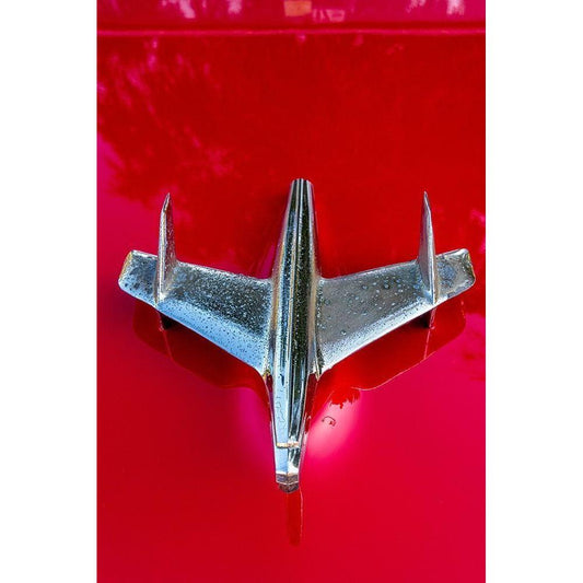 Close-up of hood detail of red 57 Chevrolet Bel Air in Habana-Havana-Cuba Gold Ornate Wood Framed Art Print with Double Matting by Miglavs, Janis