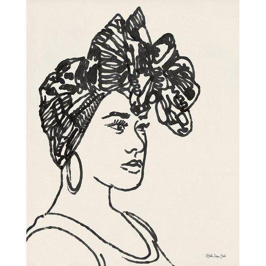 Head Wrap Line Study Gold Ornate Wood Framed Art Print with Double Matting by Stellar Design Studio