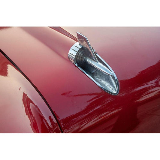 Detail of hood ornament of red 57 Chevrolet Bel Air in Habana-Havana-Cuba Gold Ornate Wood Framed Art Print with Double Matting by Miglavs, Janis
