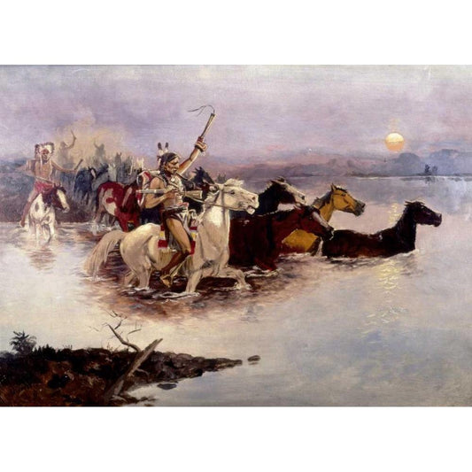 Crossing The River Gold Ornate Wood Framed Art Print with Double Matting by Russell, Charles M.