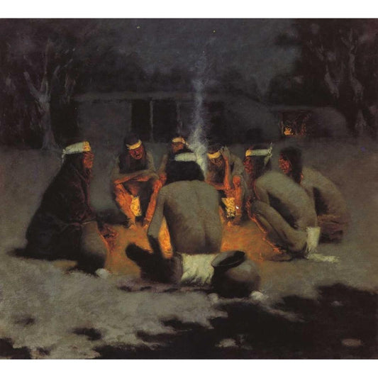 Apache Medicine Song Gold Ornate Wood Framed Art Print with Double Matting by Remington, Frederic