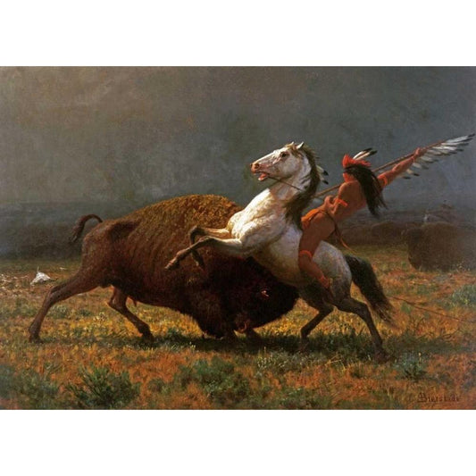 The Last of The Buffalo Gold Ornate Wood Framed Art Print with Double Matting by Bierstadt, Albert