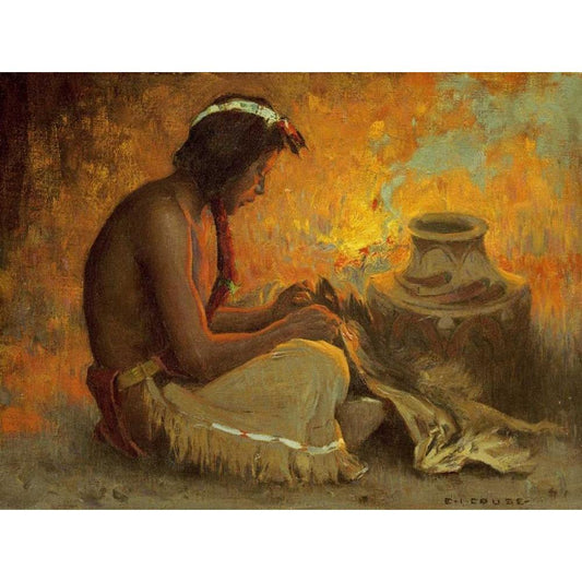 The Badger Skin Gold Ornate Wood Framed Art Print with Double Matting by Couse, Eanger Irving