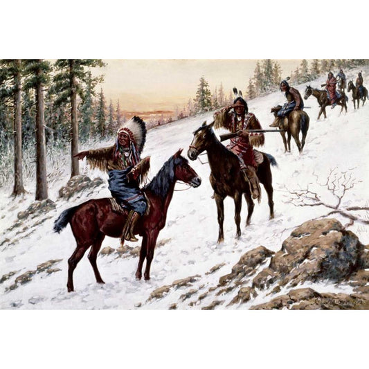 Indians On The Trail Gold Ornate Wood Framed Art Print with Double Matting by Hauser, John