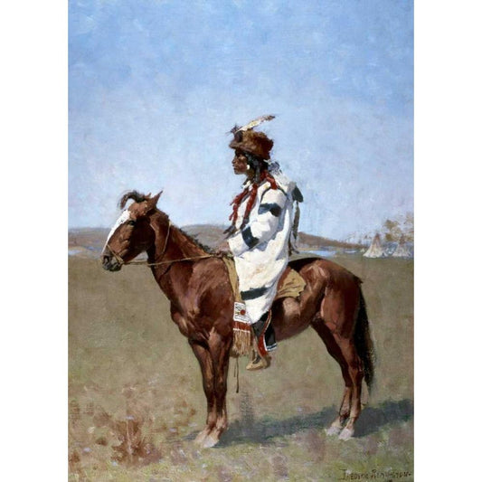 Blackfoot Indian Gold Ornate Wood Framed Art Print with Double Matting by Remington, Frederic