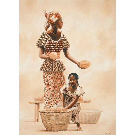African ladies 3-3 Gold Ornate Wood Framed Art Print with Double Matting by Hedy