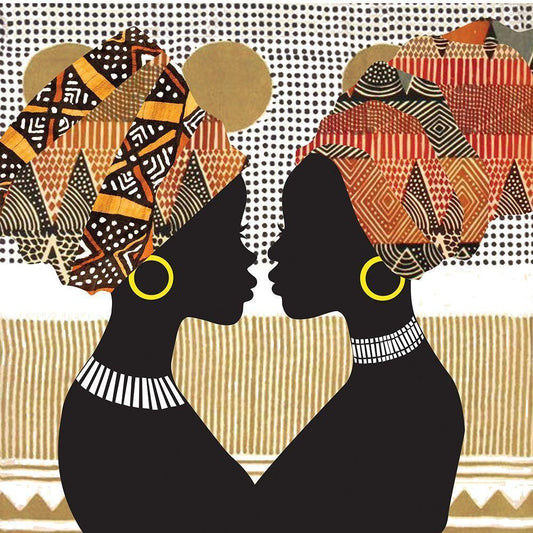 African Women Gold Ornate Wood Framed Art Print with Double Matting by P.S. Art