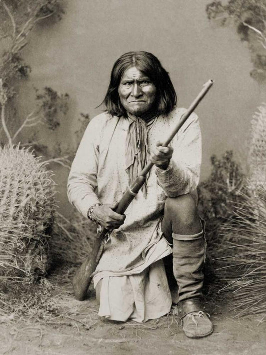 Geronimo- Apache- 1886 White Modern Wood Framed Art Print with Double Matting by Anonymous