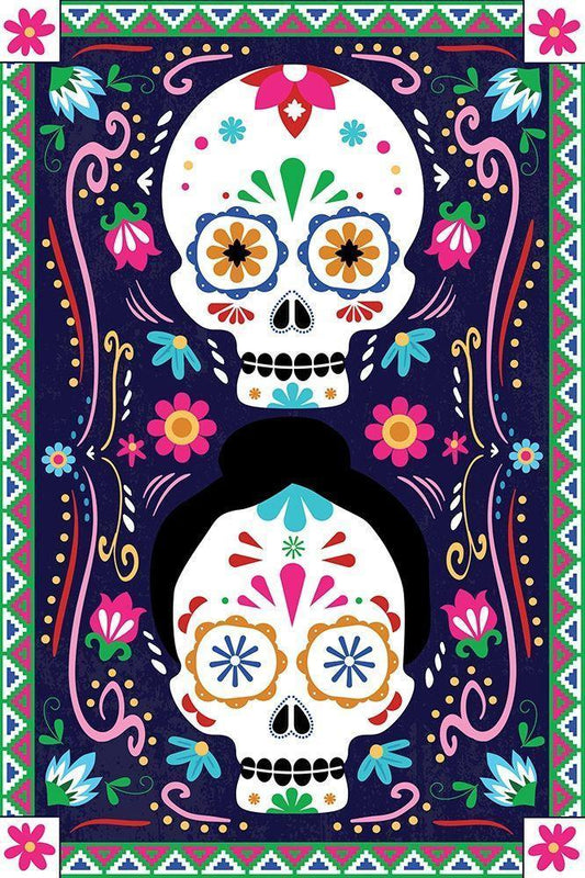 Day of the Dead White Modern Wood Framed Art Print with Double Matting by ND Art