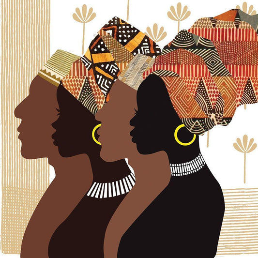 African Women White Modern Wood Framed Art Print with Double Matting by P.S. Art
