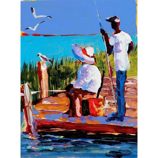 Dock Fishing Gold Ornate Wood Framed Art Print with Double Matting by DeRice, Julie
