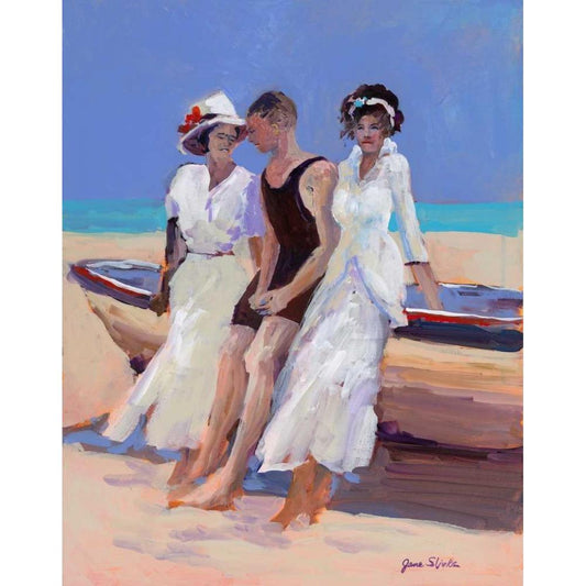 Women on Beach I Gold Ornate Wood Framed Art Print with Double Matting by DeRice, Julie
