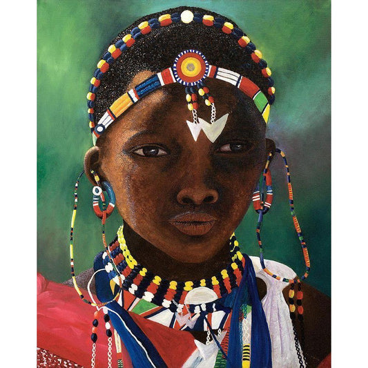 Adorned African Woman Gold Ornate Wood Framed Art Print with Double Matting by Loreth, Lanie