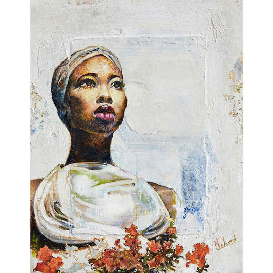 Tribal Woman Gold Ornate Wood Framed Art Print with Double Matting by Design Fabrikken