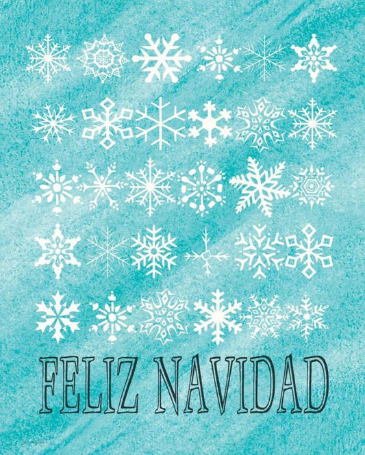 Feliz Navidad Snowflakes White Modern Wood Framed Art Print with Double Matting by Moulton, Jo