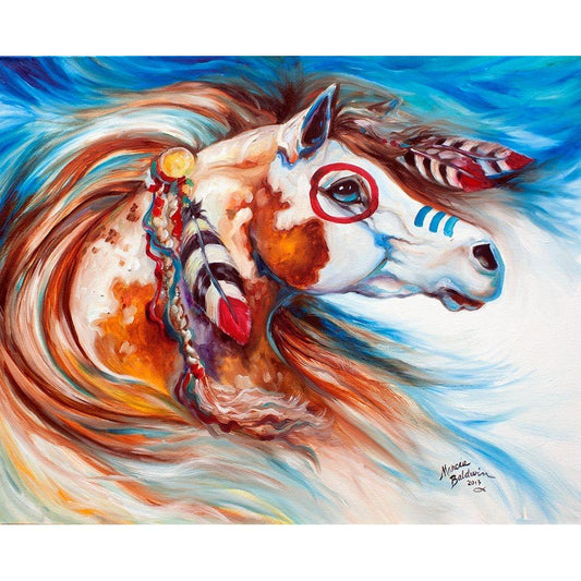 Brave The Indian War Horse Gold Ornate Wood Framed Art Print with Double Matting by Baldwin, Marcia