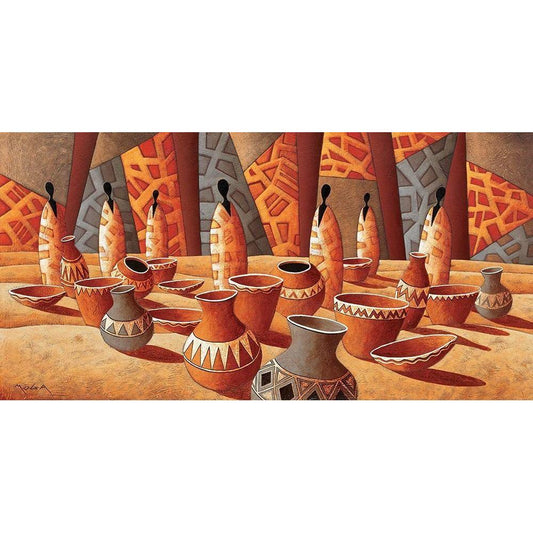 Le marche aux poteries Black Modern Wood Framed Art Print by Moga