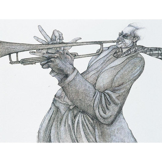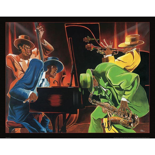 Jazz Blowin Blues Black Modern Wood Framed Art Print by Frontline