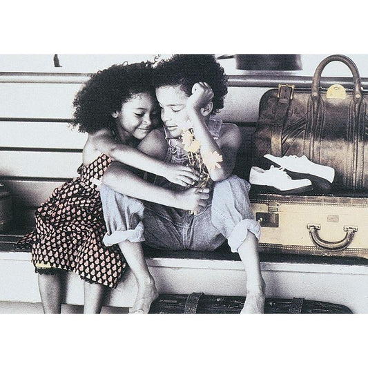 Two Kids I Black Modern Wood Framed Art Print by Unknown