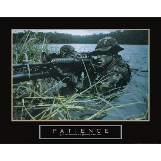 Patience - Sniper Black Modern Wood Framed Art Print by Unknown