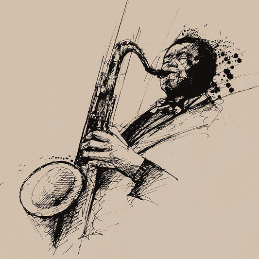 Cool Sax Black Modern Wood Framed Art Print by Drouyer
