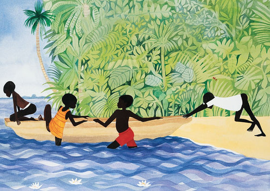 Push the Canoe Black Modern Wood Framed Art Print by Unknown