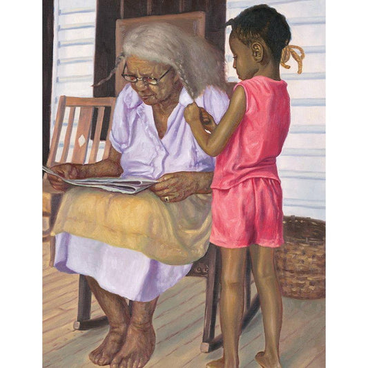 Girl Reading a Book Black Modern Wood Framed Art Print by Unknown