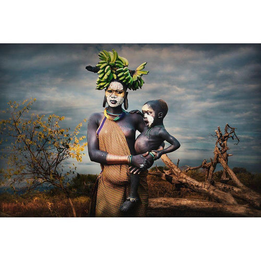 Three Surma,Ethiopia Black Modern Wood Framed Art Print by Yosifov, Svetlin
