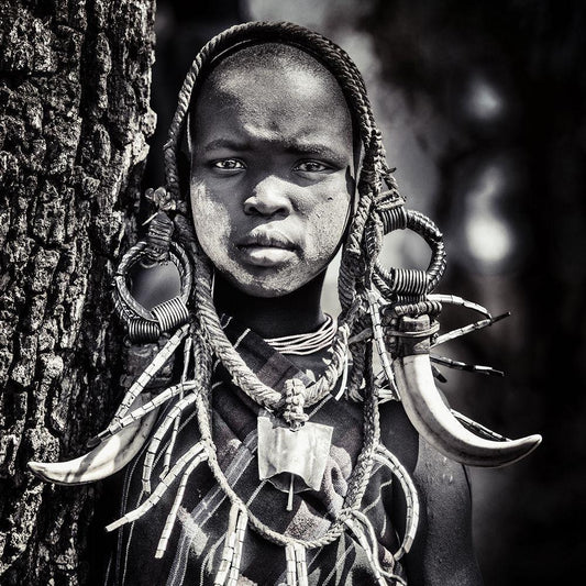 Suri Boy Black Modern Wood Framed Art Print by Vidak, Vedran