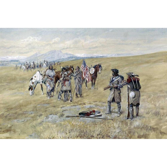Captain Meriwether Lewis Meeting The Shoshones Black Modern Wood Framed Art Print by Russell, Charles M.