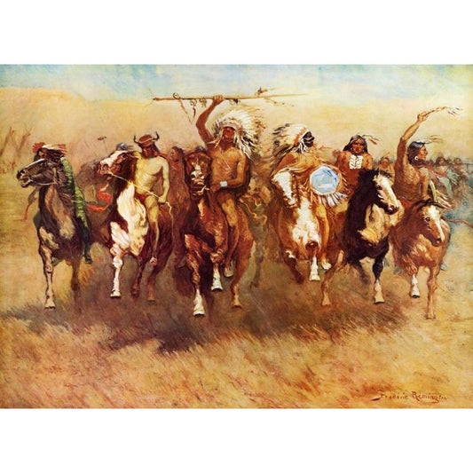 Pony War Dance Black Modern Wood Framed Art Print by Remington, Frederic