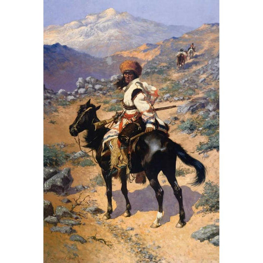 The Lookout Black Modern Wood Framed Art Print by Russell, Charles M.